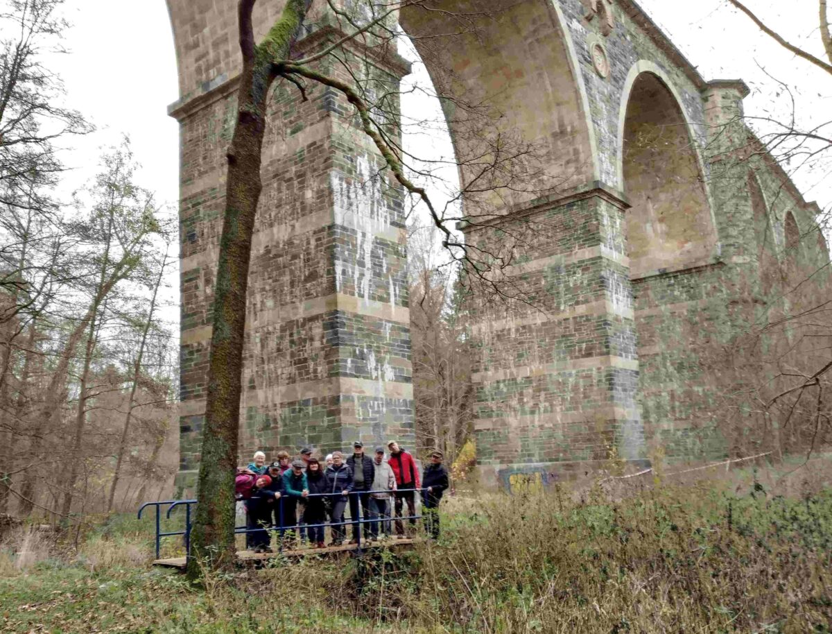 Am 15.November trafen wir uns am Wartburgplatz zur diesjährigen Abschlusswanderung. Unsere Wanderleiterin, Frau Paul, freute sich über das zahlreiche Interesse und die gute Stimmung in der Gruppe. Unser Weg führte uns diesmal durch Gartenanlagen über den Wolfsbergweg zum Stadtpark. Dort konnten wir bei einer kurzen Rast die Vogelvoliere mit ihren lautstarken Bewohnern begutachten. Anschließend drehten wir eine große Runde durch den Stadtpark um dann ins Syratal hinab zu steigen. Diese Passage verlangte von uns gute Konzentration und Teamgeist. Mit gegenseitiger Hilfe schafften alle den Abstieg und von da an ging es gemütlich durch das schöne Tal. Nach einem kurzen Fotostop am Syratalviadukt und vorbei an der Gartenanlage Poppenmühle erreichten wir nach 4,5 km das Ziel unserer Wanderung, das Cafe Lili Marlen. Dort war schon alles für unser leibliches Wohl vorbereitet und bei gutem Essen und lebhaften Gesprächen ging unsere kleine Wanderung zu Ende.