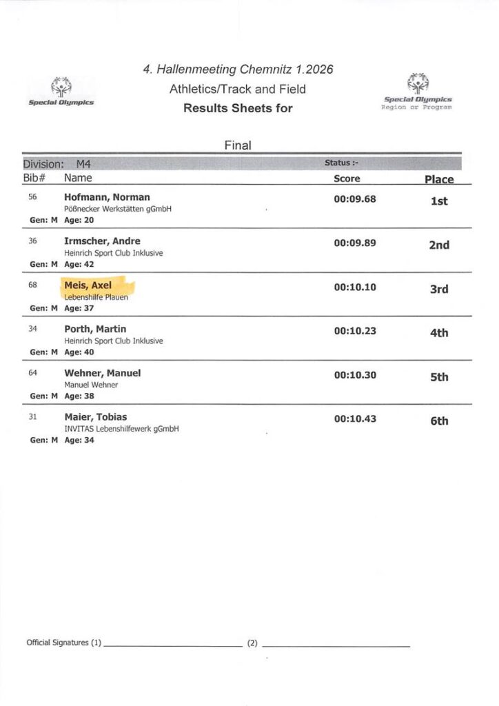 Am 31. 01. 2026 fanden die 4. Hallenmeetins in Chemnitz statt.